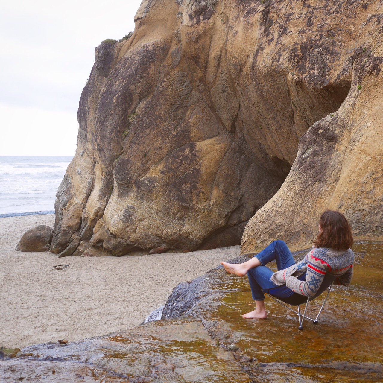 Wear what you love, what makes you feel good and that you can move in. Notice those things you wear all the time. Like your favorite soft button down plaid, or a merino wrap that you can throw over anything. I love cut offs and cardigans that are just the perfect weight. As long as it moves with you, there’s no reason why it can’t be considered “outdoors”. I like to wear earrings and scarves most of the time just because they make me feel pretty. Unless you’re in a situation where it’s dangerous, I believe in accessories.