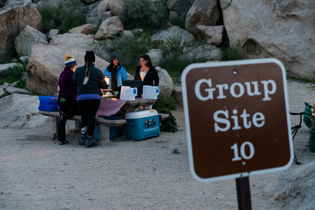 On Friday afternoon, Shoestring Warriors arrived at Indian Cove from San Francisco, Los Angeles and San Diego, just in time for an afternoon hike into the sunset. Back at camp, Trip Leader Canyon prepared his favorite Soyrizo Tacos with fresh pico de gallo.